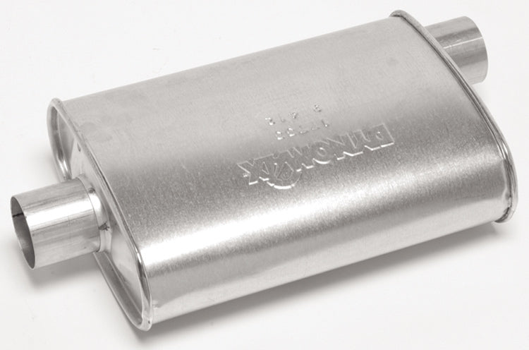 Muffler - Super Turbo - 2-1/2 in Offset Inlet - 2-1/2 in Center Outlet - 14 x 4-1/4 x 9-3/4 in Oval - 18-1/2 in Long - Steel - Aluminized - Universal - Each. **NOTE: